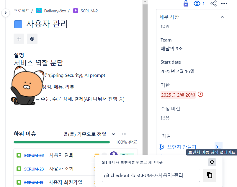 - Jira에서 브랜치를 생성할 경우, jira 이슈가 포함된 브랜치를 체크아웃해주고 커밋 메시지에 jira 이슈를 작성해주면 됩니다.