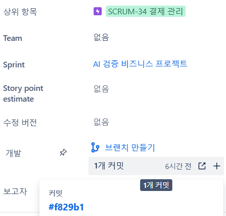★ 저는 커밋이 완료되면 바로 Jira 이슈에 적용되는 줄 알았는데 PR를 진행하면 Jira에 연동되는 것을 확인 할 수 있습니다.